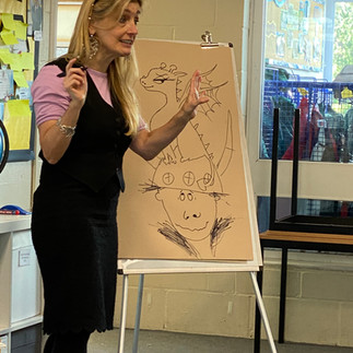 Later, she visited Reception, Years 1 and 2 at Pre-Prep, when she drew them a very special Toothless and Hiccup illustration (to keep), read them an Emily Brown story and answered their questions.